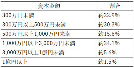 資本金額は会社規模とも関係しますが、約70%の会社が資本金1,000万円未満となっています。このあたりは後述する節税とも関係しています。
