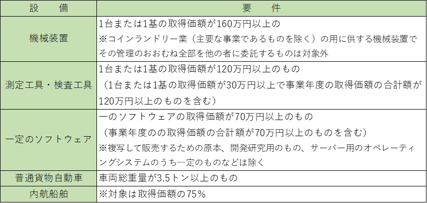 適用対象資産は、以下の設備になります。