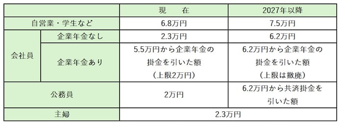 今回の改正の最大のポイントは、iDeCoの拠出限度額が引き上げられる点です。 また、企業年金(企業型DC・企業型DB)に加入されている会社員の方でも、企業年金の掛金が上限に達していない場合、 iDeCoの掛金を増額することで、 合計月額6.2万円という上限枠まで拠出可能になり、税制優遇枠を最大限使い切ることができるようになります。 改正の時期は、 2027年1月を目指して準備が進められていると厚生労働省から公表されています。 <iDeCoの拠出限度額>